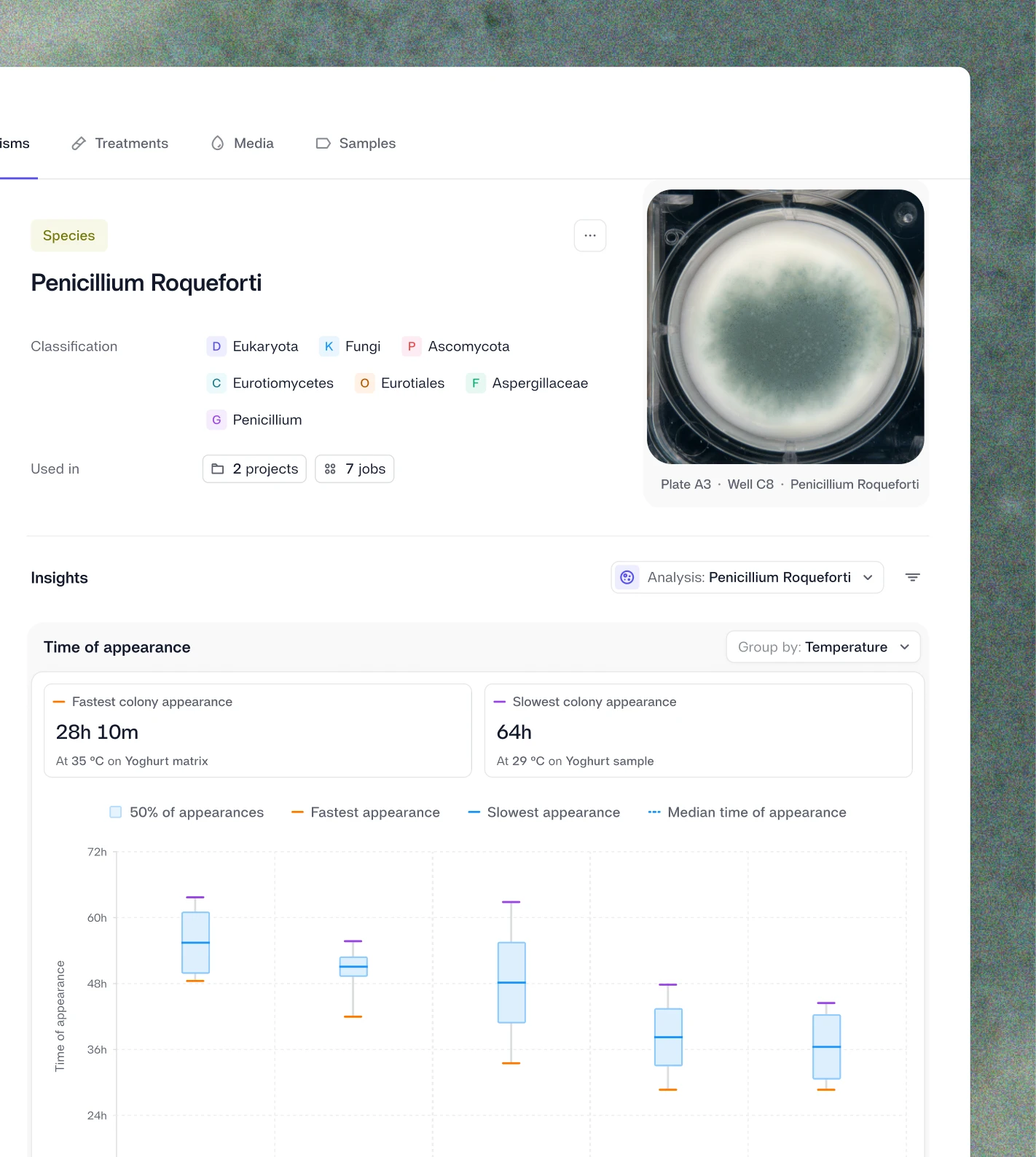 AI-powered analysis, trained on large-scale biological datasets, converts captured images into accurate, standardized data points. Reshape supports a wide range of assays, including growth kinetics, total viable counts, morphology, and many more.